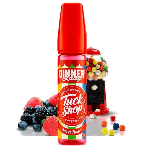 Tuck Shop – Sweet Fusion da Vape Dinner A Lady E-Liquid é um saboroso Juice frutado que mistura notas de frutas, levando essências de frutas vermelhas, melões variados e frutas em borracha.
